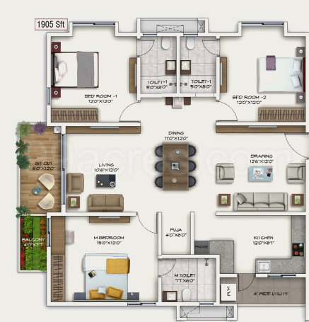 Super Built-Up Area: 1,905 sq. ft.